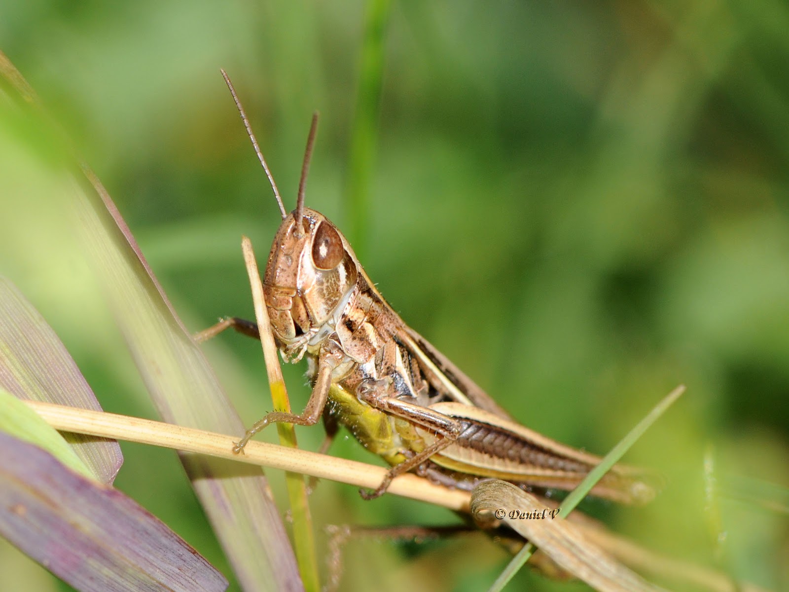 Ce Criquet des bromes, ou criquet des mouillères, Euchorthippus declivus nous l'avons aperçu en pays Beaujolais, en Aout 2012. On croirait un juvénile, car les ailes semblent ne pas être développées; il n'en est rien, c'est une des caractéristiques de Euchorthippus declivus. Conséquence, il saute mais ne vole pas! En outre il est un criquet chanteur...